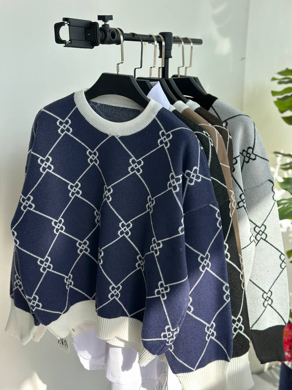 بلوز بافت طرح لوزی دخترانه